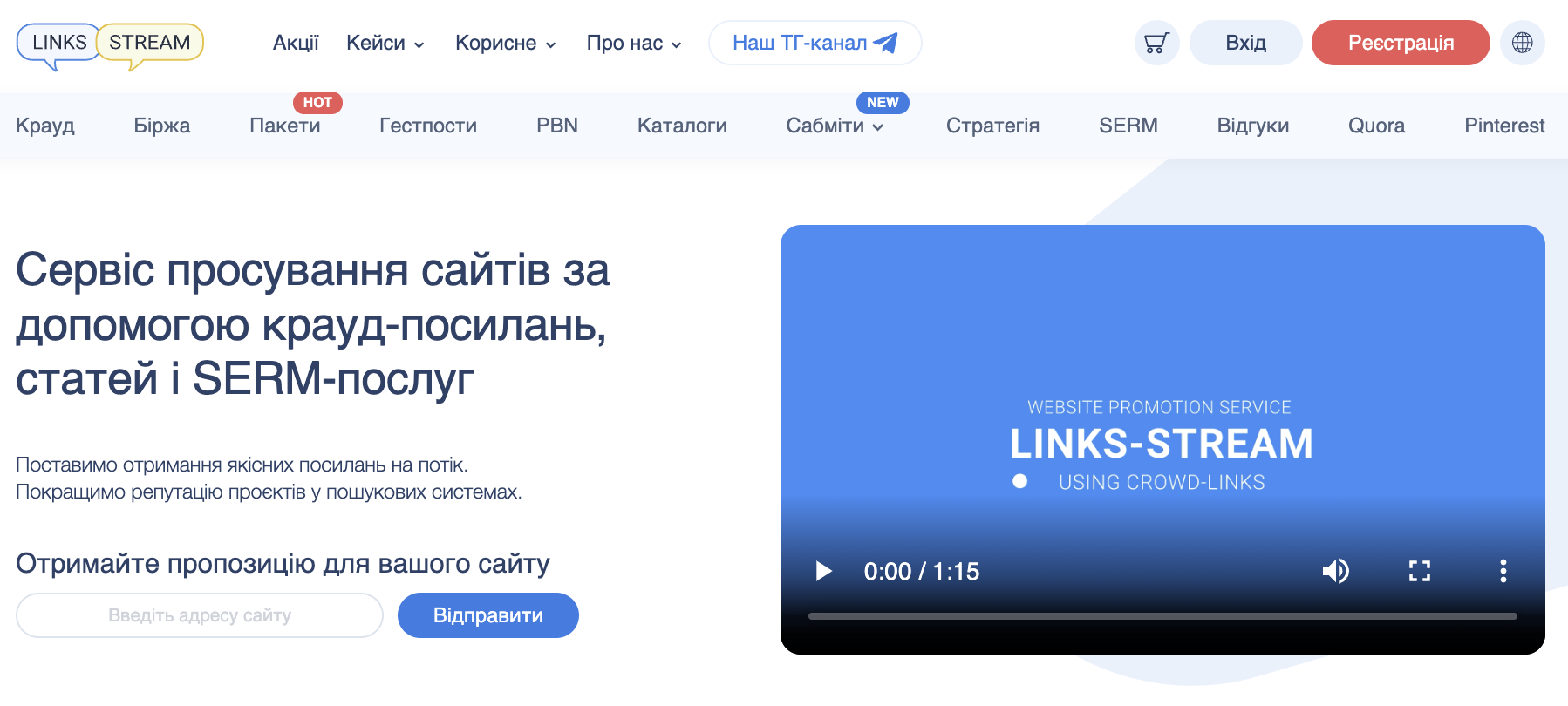 Links-Stream – це компанія з 7-річним досвідом роботи і безліччю успішних проектів. Сервіс надає послуги з розміщення різноманітних типів посилань – від крауд-посилань до формування власної мережі PBN.