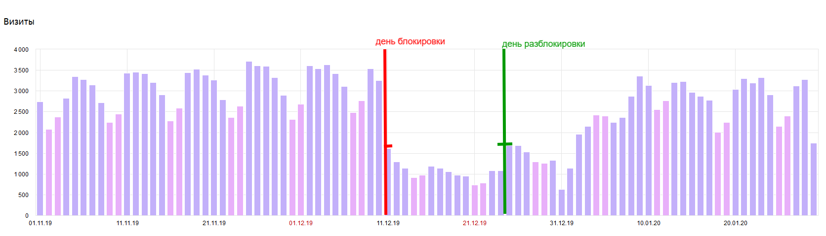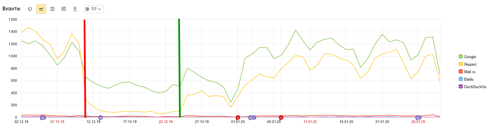 25.12.19 трафик на сайт заметно улучшился, но так как Новый год на носу трафик всегда к этому времени проседал, поэтому оценить реальные потери сложно.