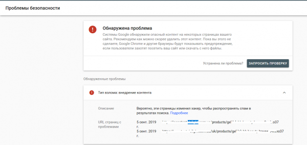 Или меня стороной обходило, или новая фишка в Гугл, но теперь в Search Console начали приходить оповещения о проблемах безопасности из-за наличия на сайтах спамных комментариев с обратными ссылками.